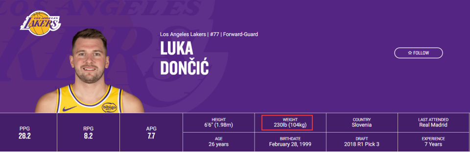 欧媒曝东契奇复胖111公斤?NBA官网104KG打脸 数据虚假刻意黑